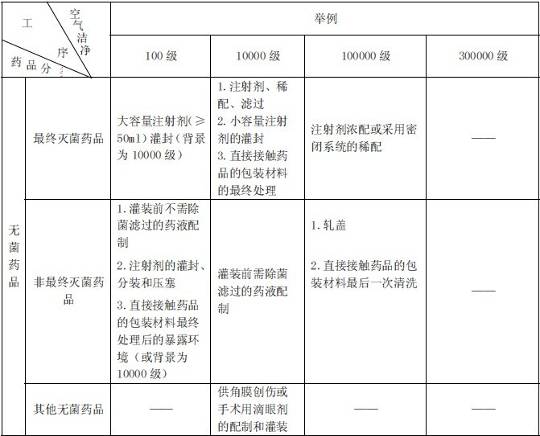 2、散发粉尘或有害物质的医药洁净室(区),不应采用走廊回风,且不宜采用顶部回风。 9.3.3 医药洁净室(区)内各种设施的布置,应满足气流流型和空气洁净度等级的要求,并应符合下列规定: 1、单向流医药洁净室(区)内不宜布置洁净工作台;在非单向流医药洁净室(区) 内设置单向流洁净工作台时,其位置宜远离回风口。 2、易产生污染的工艺设备附近应设置排风口。 3、有局部排风装置或需排风的工艺设备,宜布置在医药洁净室(区)下风侧。 4、有发热量大的设备时,应有减少热气流对气流分布影响的措施。 5、余压阀宜设置在洁净空气流的下风侧。 9.3.4 医药洁净室(区)送风量,应取下列最大值: 1、按表9.3.4 中有关数据计算或按室内发尘量计算。 2、根据热、湿负荷计算确定的送风量。 3、向医药洁净室(区)内供给的新鲜空气量。 表9.3.4 空气洁净度等级和送风量(静态)